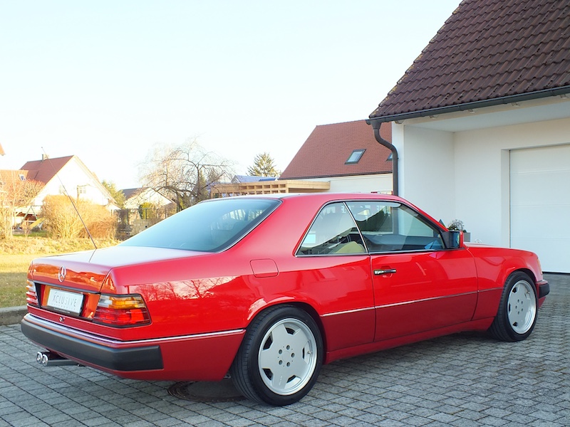 Der Erstbesitzer aus der Schweiz hat das Coupe mit original AMG Räder, AMG Sportfahrwerk und einem Remus End- und Mittelschalldämpfer ausrüsten lassen. Das 5-Gang Sportgetriebe unterstreicht den sportlichen Charakter und passt ausgezeichnet zum dem 300 CE – 24. Seit 2020 ist das Coupe in Deutschland und wurde von beiden Besitzern nur mit Saison-Kennzeichen bewegt. Ein Winterbetrieb ist anhand des hervorragenden Gesamtzustandes von allen Besitzern auszuschließen.