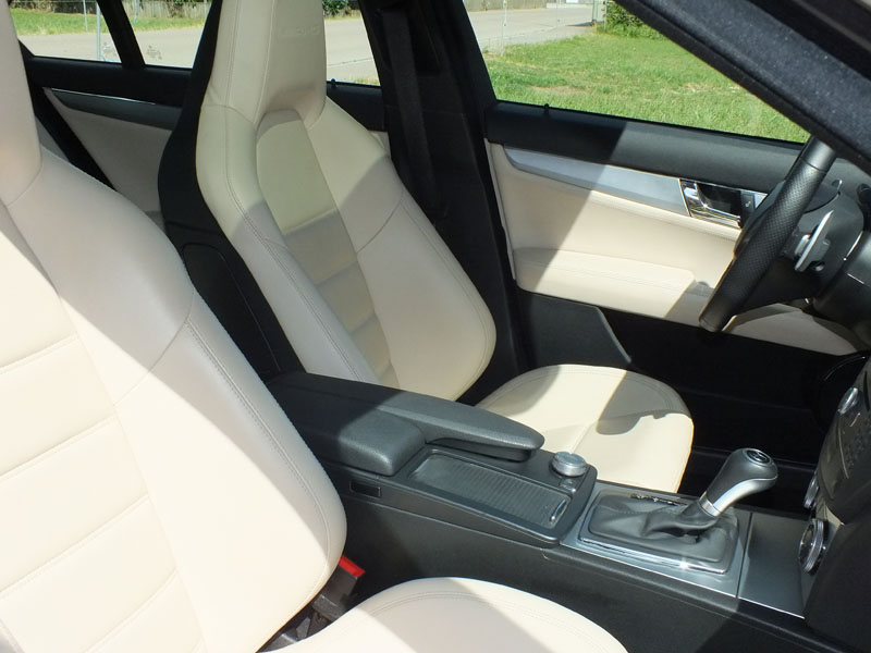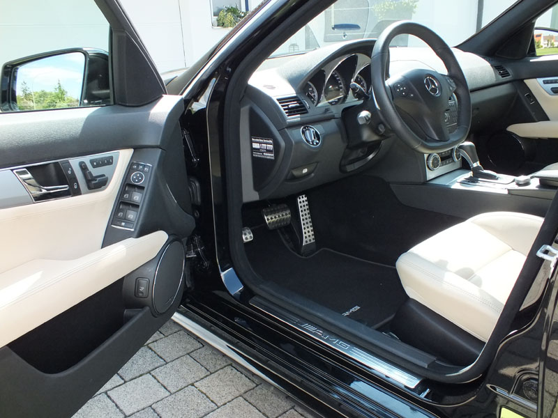 Der C 63 AMG in seiner schönen Farbkombiantion mit hellem Nappaleder ist nicht nur ein familientaugliches Alltagsauto sondern auch ein Sportwagen der kaum Wünsche offen lässt.